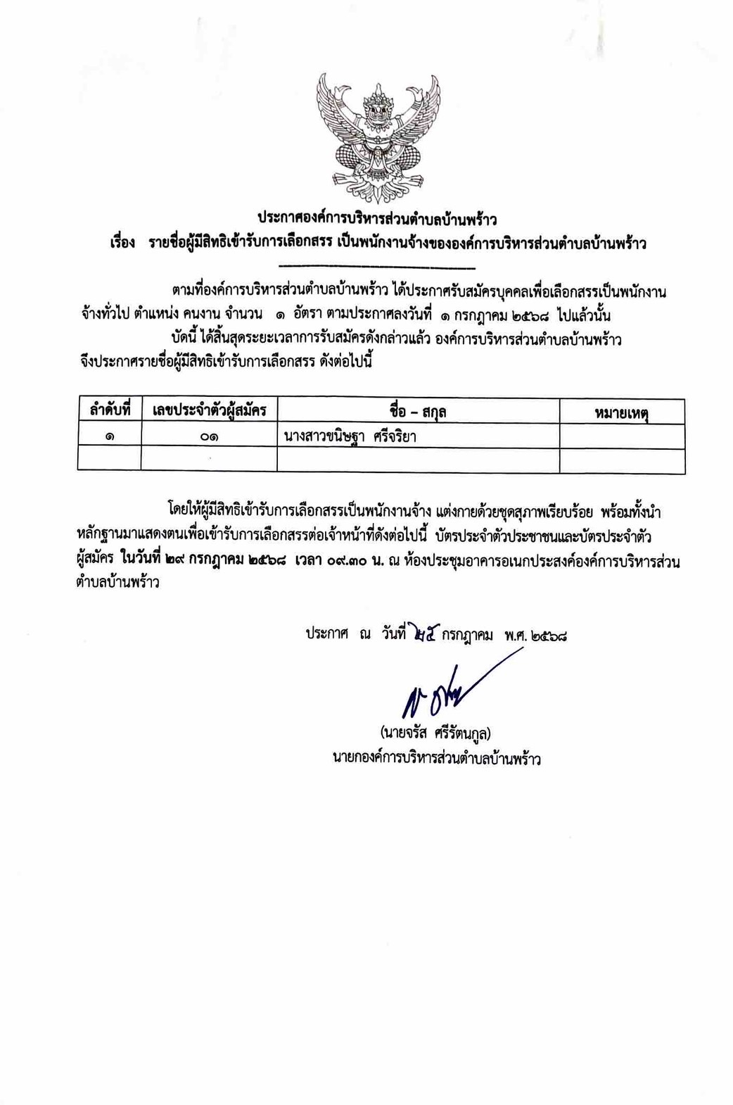 ชื่อเรื่อง : ประกาศ รายชื่อผู้มีสิทธิเข้ารับการเลือกสรร เป็นพนักงานจ้างของ อปท.